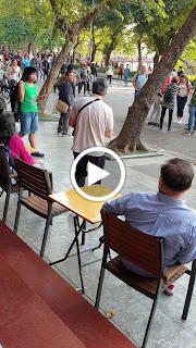 Many at the Hoem Kiem Lake exercising and dancing singing.
